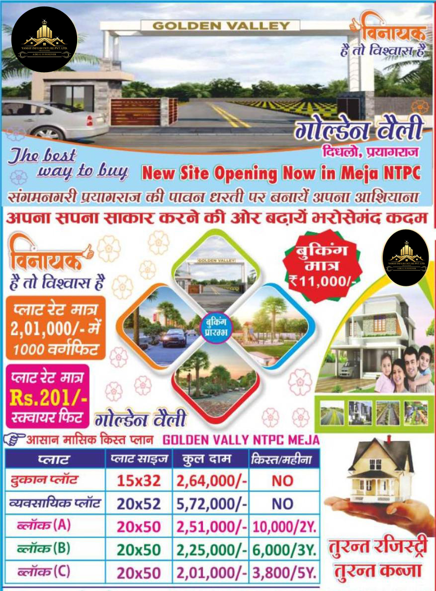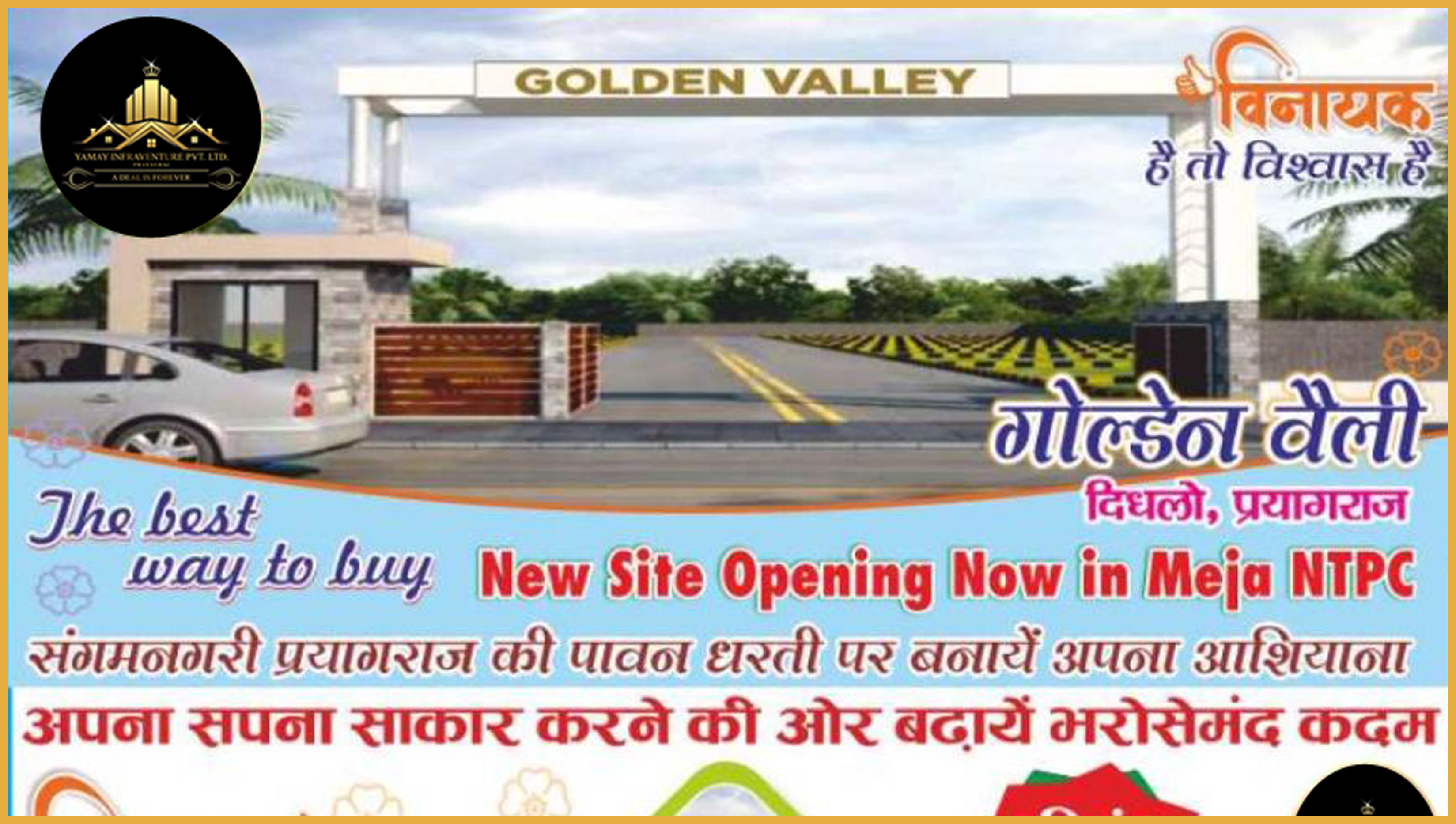 GOLDEN VALLEY at Didauli, Prayagraj is a premium real estate developmant project in Prayagraj, This Project is Spread Over Approximate 200 Acre, which has launched an ambitious residential project. This project has been designed in such a way the each resident is guaranteed alife time of privacy and an unhurried pace of life with a completely safe, green and pollution free environment. Indeed the property market in India real estate to have not glimmered to the metro cities but to the capital of U.P has elevated to the country. Embraced of lush of greenery all around, signifies to experience the simple joy of life. GOLDEN VALLEY is what modern living is all about. The U.S.P of the project is Lucky Draw Format with Agriculture Income. Its Limited Time Offer, Hurry up Exclusive